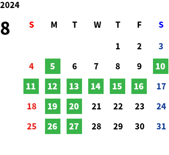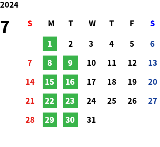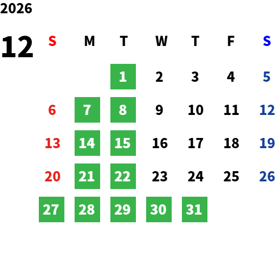 定休日 ※定休日は変更になる場合がございます。予めご了承ください。