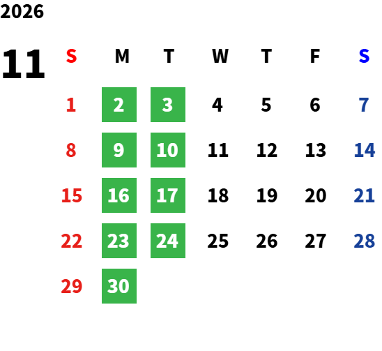 営業日カレンダー