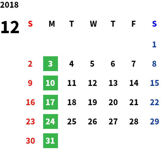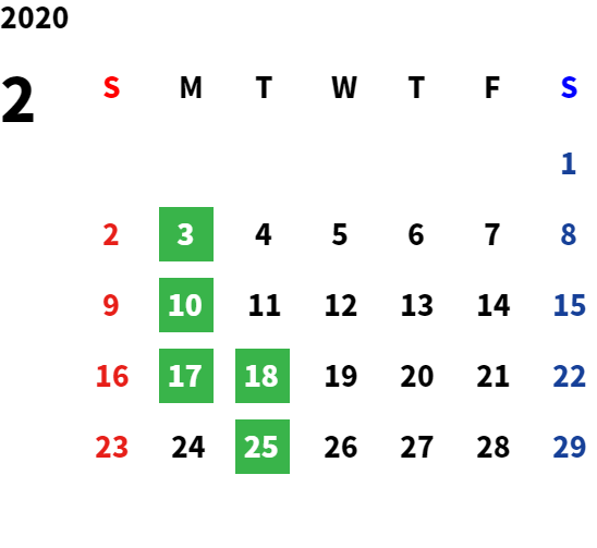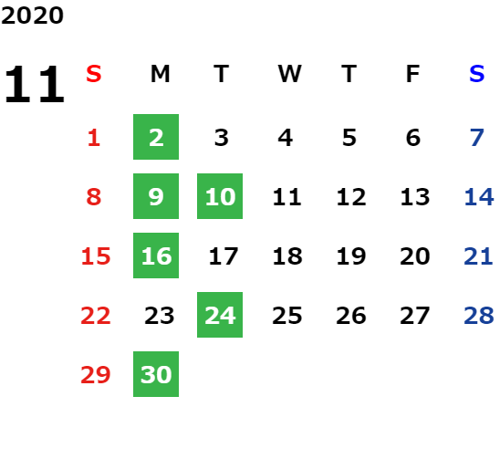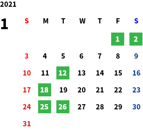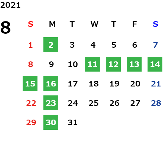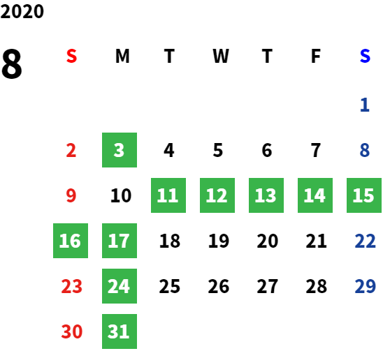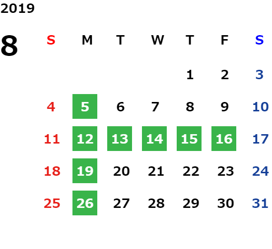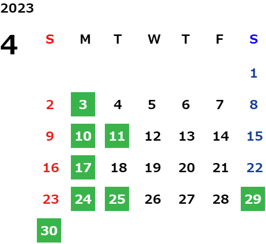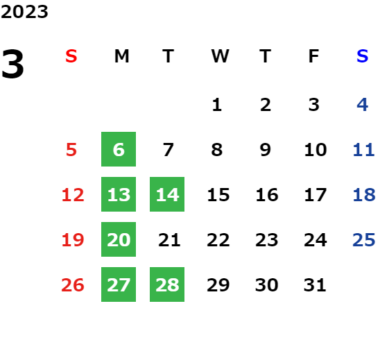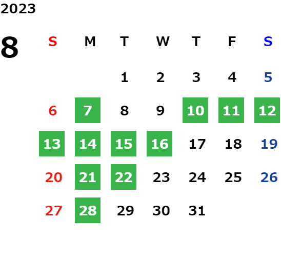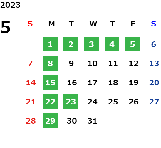 営業日カレンダー
