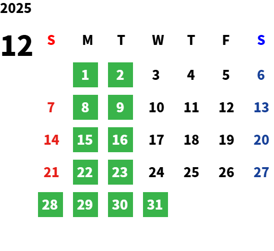定休日 ※定休日は変更になる場合がございます。予めご了承ください。
