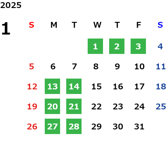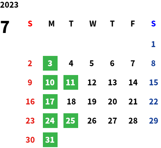 定休日 ※定休日は変更になる場合がございます。予めご了承ください。