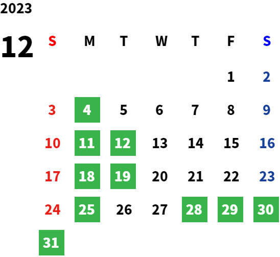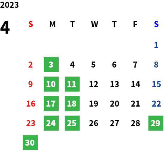 定休日 ※定休日は変更になる場合がございます。予めご了承ください。