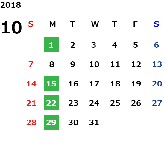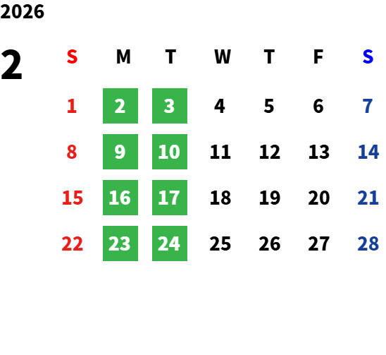 定休日 ※定休日は変更になる場合がございます。予めご了承ください。