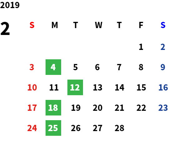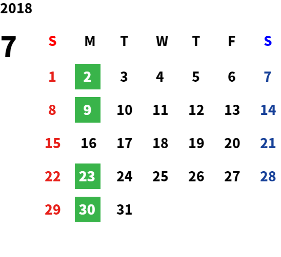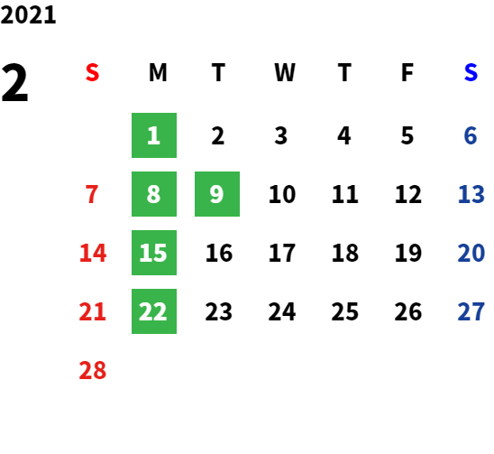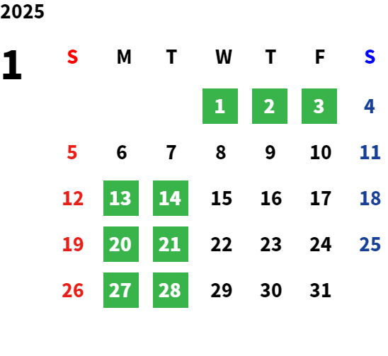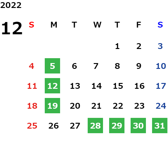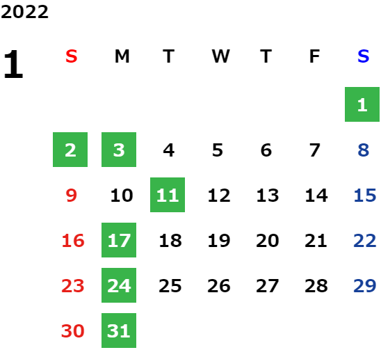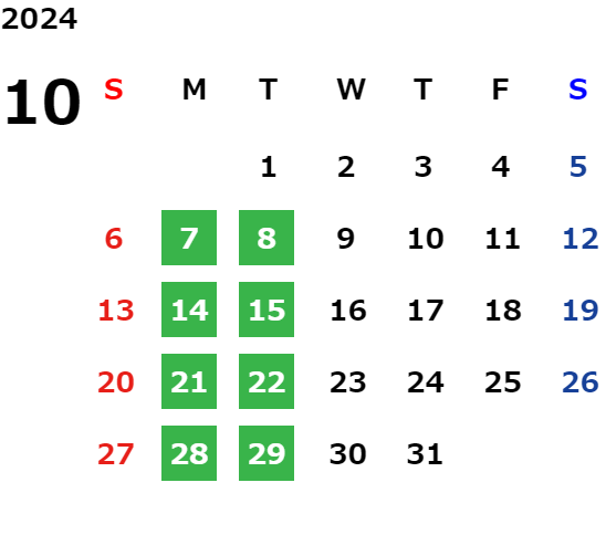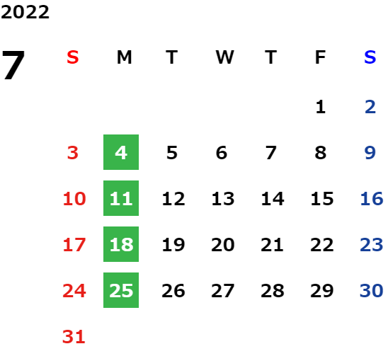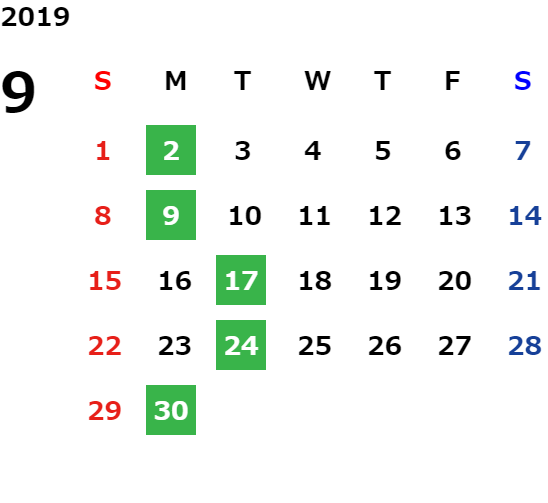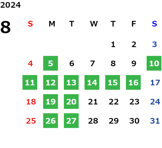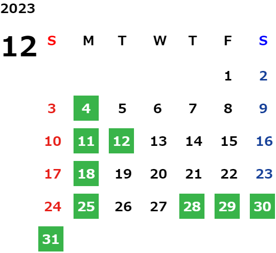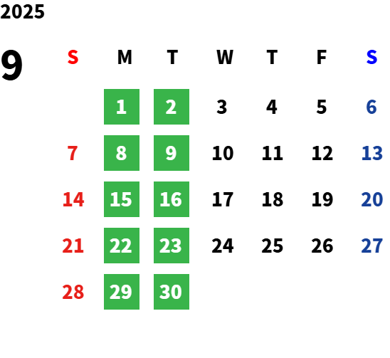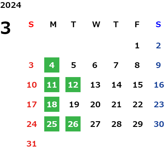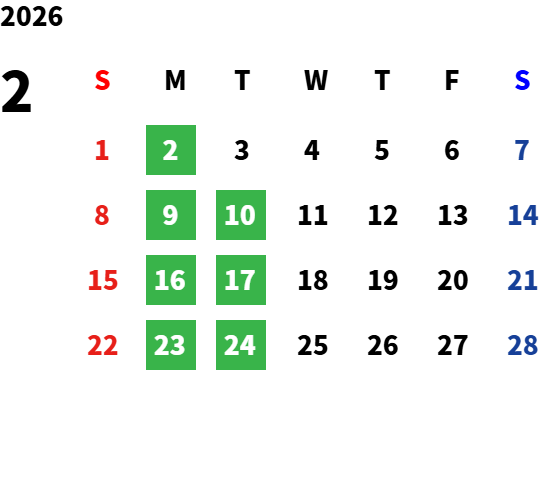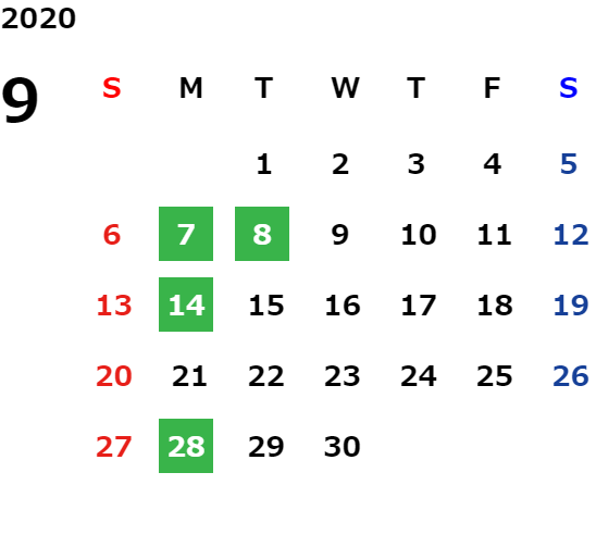 定休日 ※定休日は変更になる場合がございます。予めご了承ください。